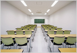 約300人を収容する大講義室。講演会などにも利用される。その他中小の講義室がある。
