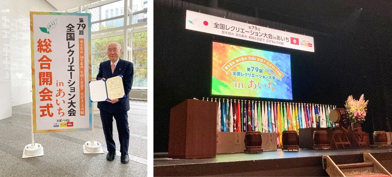 ついては、2025年10月31日(金)、第79回全国レクリエーション大会の総合開会式(愛知県芸術劇場大ホール)において、杉浦康夫学長が表彰されました。