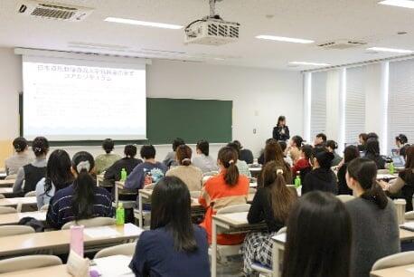 10月25日(土)、「2025年度リカレント教育講座・交流会」をヒューマンケア学部棟で開催し、本学卒業生、在学生、現役養護教諭の約70名の参加がありました。今年度のテーマは「養護教諭に求められる力」です。昨年、現職の養護教諭に「養成機関卒業後に必要な知識・技能を習得しているかを確認するためのWeb調査」を実施しました。その結果を、近森けいこ大学院子どもケア研究科長が報告し、本学子どもケア学科児童発達教育専攻の中島卓裕先生から、養護教諭に求められる力の「支援」に関わる内容について臨床心理士としてスクールカウンセラーの経験も踏まえて、学校現場で養護教諭が支援の必要な子どもをどう見立て、その支援をつなぐためにどうすると良いかのヒントや気付きをお話しいただきました。参加者からは、今後の子どもへの接し方を考え、良い方向に変化させるために活用できそうというような前向きな意見が聞かれました。